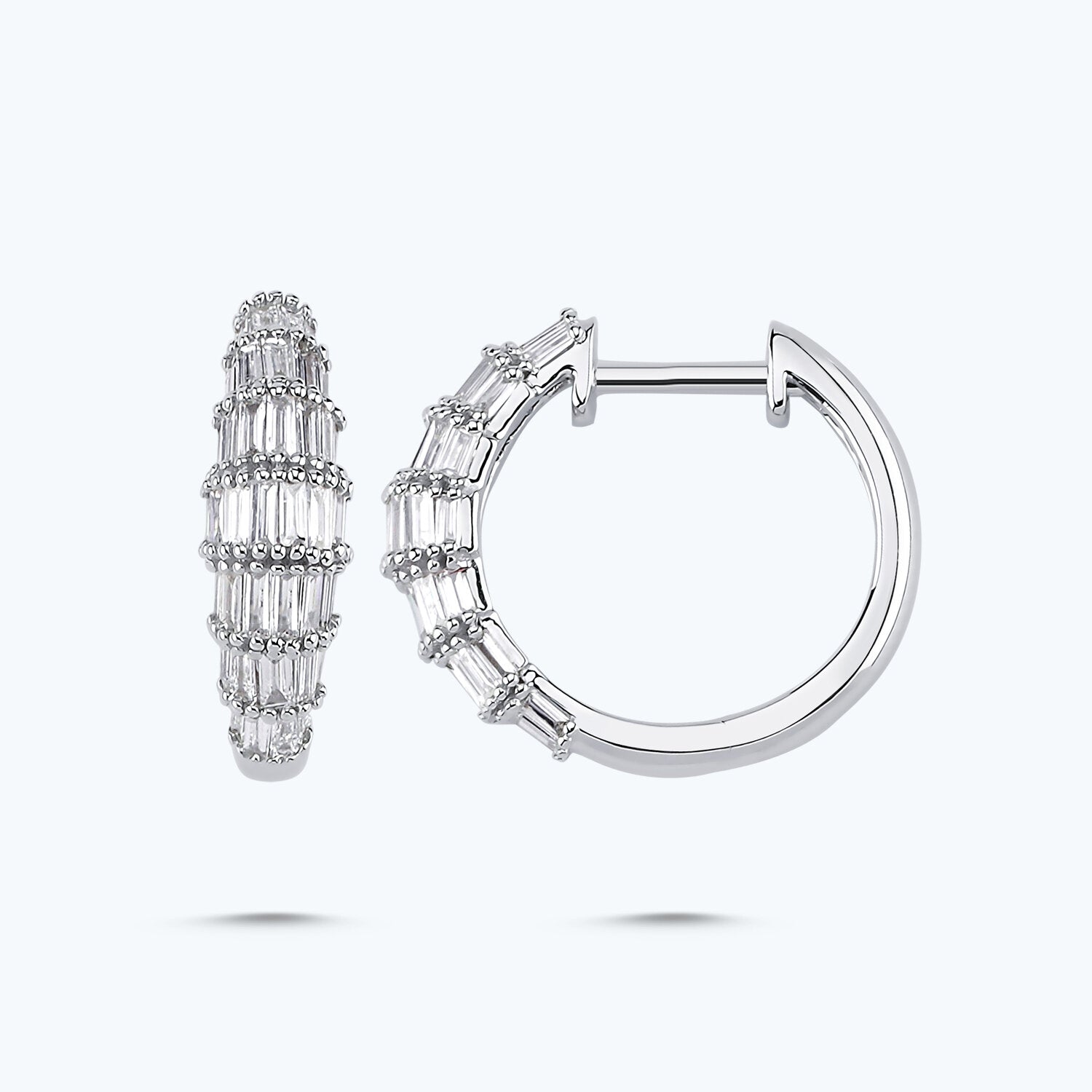 Präsentieren Sie Ihre Eleganz und Ihren Stil mit diesen atemberaubenden Diamantohrringen von Altınbaş Juwelier. Hergestellt aus 14 Karat Weißgold, verkörpern diese Ohrringe die Verkörperung von Reichtum und Prestige, die jedem Outfit einen Hauch von Luxus verleihen. Jeder Ohrring ist kunstvoll mit Baguette-Diamanten besetzt, die für ihren einzigartigen Stil und ihre unvergleichliche Schönheit bekannt sind. Diese Diamanten sind sorgfältig ausgewählt und perfekt arrangiert, um ein atemberaubendes Schmuckstück zu kreieren, das sicherlich die Aufmerksamkeit auf sich zieht. Diese Ohrringe sind nicht nur ein Ausdruck von Luxus, sondern auch ein Zeichen für Qualität und Handwerkskunst. Bei Altınbaş Juwelier legen wir großen Wert auf Detailgenauigkeit und Präzision, und das zeigt sich in jedem Stück, das wir kreieren. Diese Ohrringe sind perfekt für die stilvolle Frau, die Selbstvertrauen ausstrahlt und ihre Individualität ausdrückt. Sie sind mehr als nur ein Accessoire - sie sind ein Statement. Ob Sie sie zu einer besonderen Veranstaltung tragen oder sie einfach als tägliches Accessoire verwenden, diese Diamantohrringe werden sicherlich einen bleibenden Eindruck hinterlassen. Sie sind das perfekte Geschenk für sich selbst oder eine geliebte Person, ein wahrer Ausdruck von Liebe und Wertschätzung. Mit diesen Diamantohrringen von Altınbaş Juwelier können Sie Ihren Stil zum Ausdruck bringen und Ihre Schönheit unterstreichen. Sie sind ein wahres Meisterwerk, das Ihren persönlichen Stil und Ihre Eleganz unterstreicht.
