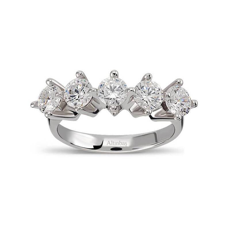 Die Schmuckstücke von Altınbaş Fünf Steine Goldring werden von erfahrenen Handwerkern sorgfältig aus 14Kt massivem Gold mit einem zarten Design handgefertigt.