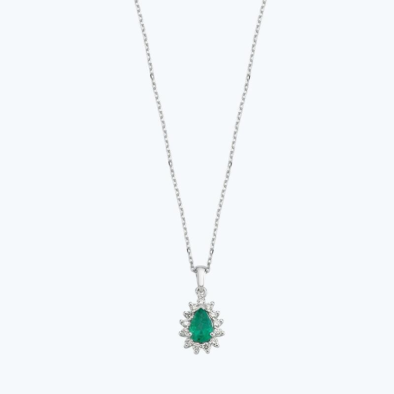 0.15 ct Tropfen Smaragd Diamant Halskette