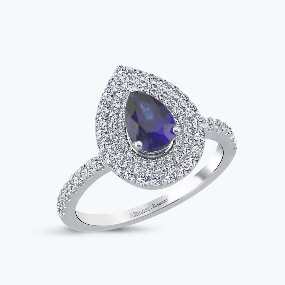 Homepage > > Birne > Tropfenförmiger Saphir Diamant Ring